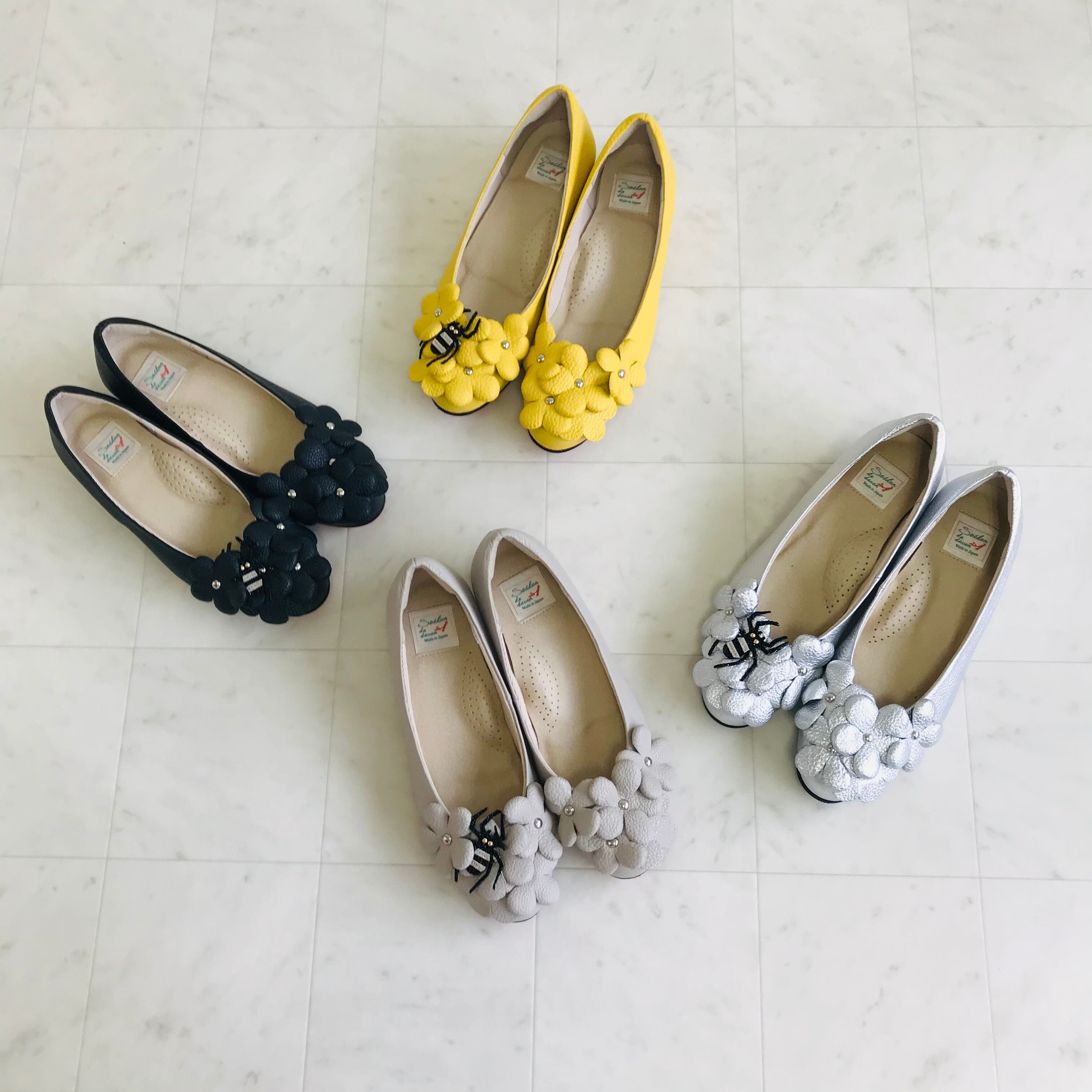 バレエシューズ フルール シルバー、黒、イエロー、ベージュ